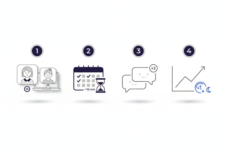 • Sesión semanal 1:1 (30 min) con ajustes finos.